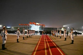 The Cabinet of Ministers said that a guard of honor company was lined up at the Noi Bai International Airport in Hanoi, and the flags of the two countries were hung.