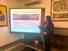 The presentation also announced the role and efforts of the Kyrgyz Republic in promoting the mountain agenda on the international stage and noted the initiatives being promoted within the framework of the implementation of the "Five Years of Action for the Development of Mountain Regions" and the UN Framework Convention on Climate Change (UNFCCC), and a separate stand was organized for a photo exhibition of paintings with mountain landscapes of Kyrgyzstan. The presentation was accompanied by a showing of tourist videos and handouts in the form of brochures.