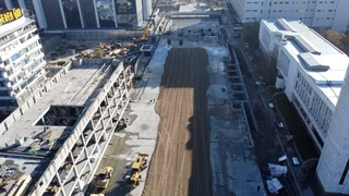 The underground parking for 250 cars is more than 60% complete. The complex includes a two-level parking lot, landscaped pedestrian areas and a barrier-free environment that ensures accessibility for all categories of citizens.