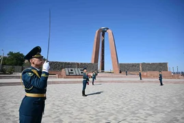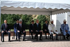 The president of Kazakhstan, accompanied by Chairman of the Cabinet of Ministers - Head of the Presidential Administration Adylbek Kasymaliev, laid a wreath at the memorial to the victims of the tragic events of 1916, as well as flowers at the grave of the outstanding Kyrgyz writer Chyngyz Aitmatov.