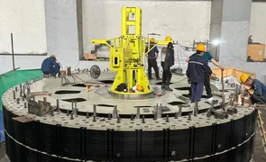 Laser cleaning of the metal surfaces of the turbine shaft and restoration of the volute are underway. The rotor is currently being prepared for pole installation.